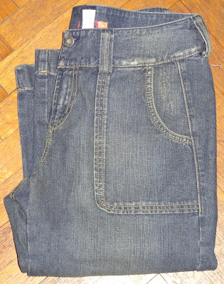 Jeans marimea 12, dar sunt mai mici. Talie 80 cm, sold 104 cm, lungime 78 cm. Noi.